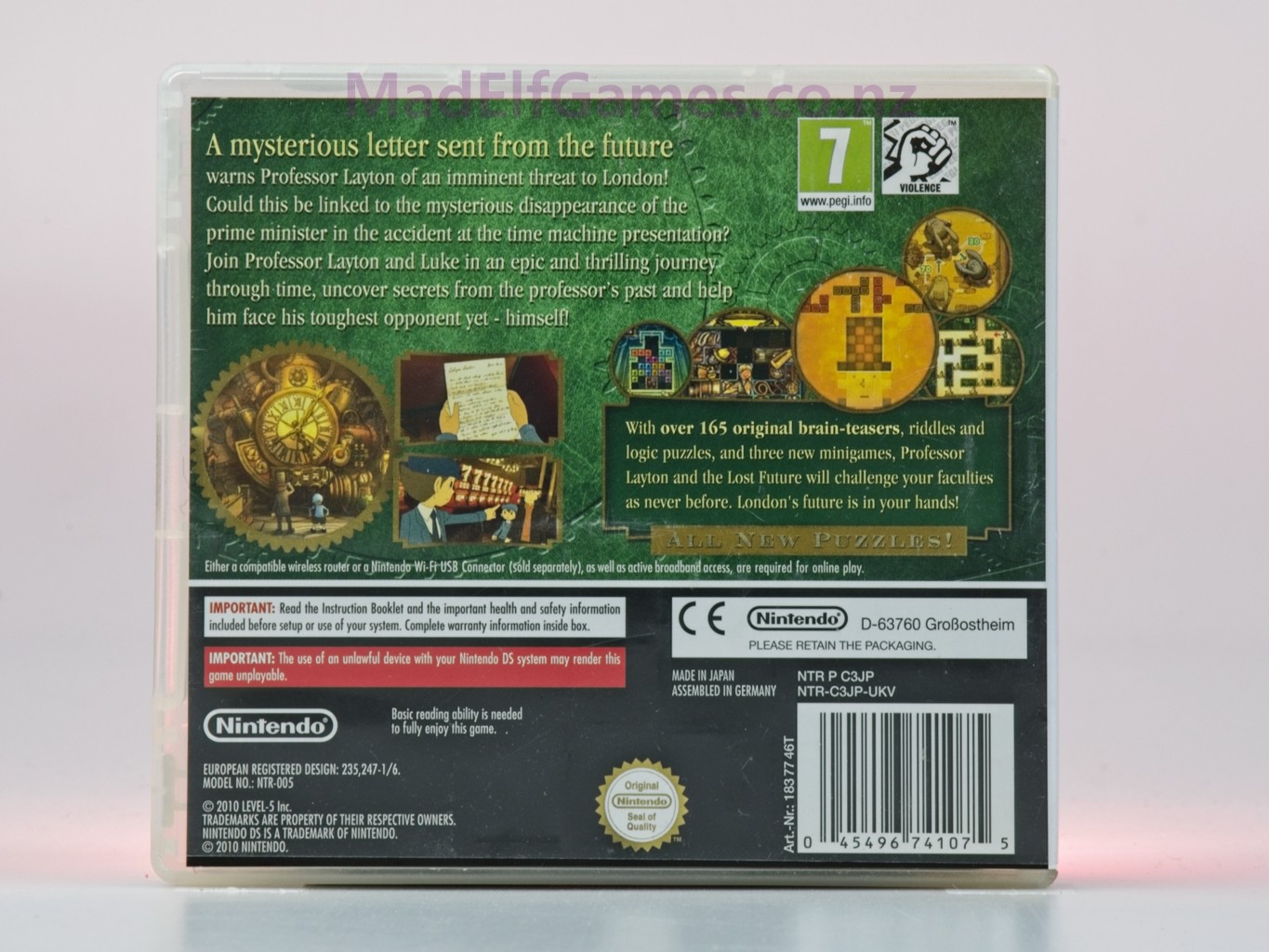 Professor Layton and the Lost Future on Nintendo DS delivers an elegant mystery wrapped around a generous collection of brainteasers. Follow Layton and Luke through a layered, time-tinged storyline, presented with cinematic animation, voiced scenes, and a polished, sepia-kissed art style. Puzzles range from logic grids and matchsticks to spatial riddles and trick questions, each introduced with clear wording and gentle hints that preserve the satisfaction of real insight. Exploring stylus-friendly London streets reveals collectibles, hidden hint coins, and optional challenges, while a clean journal tracks clues and objectives. The narrative stakes rise with emotional turns that contextualize each investigation, culminating in a memorable finale that ties character history to the central enigma. With smart pacing, charming characters, and a soundtrack that underscores both whimsy and melancholy, this entry stands as a high point for the series — thoughtful, cohesive, and richly replayable.
