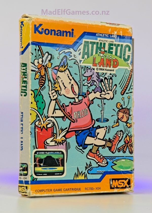 Athletic Land is a classic Konami action-platformer that feels like a cartoon sports day turned into a videogame. You guide a plucky hero through compact stages packed with hurdles, tricky jumps, moving platforms, and sudden surprises that reward sharp timing. Each area plays like a mini gauntlet: quick to learn, tough to master, and loaded with that arcade-style momentum where every mistake costs precious progress. The visuals are colorful and clean, the enemy encounters are simple but sneaky, and the level layouts keep switching up the rhythm with new hazards and pacing. A great pick for collectors who love early console-era platform challenges with a sporty twist. (MSX cartridge; original hardware required.)