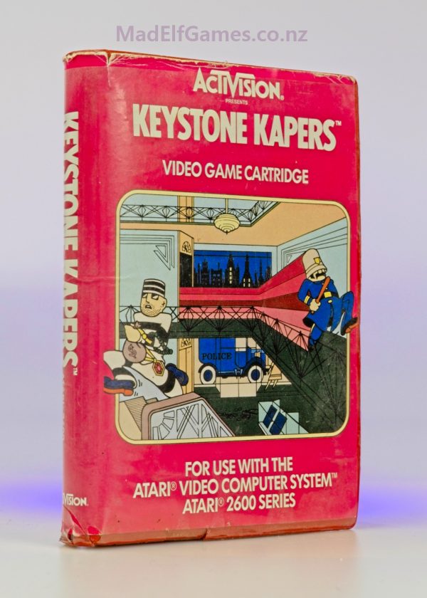 Keystone Kapers is a beloved Activision classic built around a clean, clever idea: chase a thief across multiple levels of a bustling setting, navigating escalators, ladders, and obstacles while the clock ticks down. The game’s joy is in its pacing—quick decisions, tight routes, and the constant feeling that you’re one shortcut away from the capture. Visuals are lively and readable, with playful animation that gives the pursuit personality without complicating the action. It’s an easy title to understand instantly, yet it keeps its hooks in you through score chasing and improving efficiency on every run. A top-tier pick for retro collectors who appreciate classic design that’s polished, bright, and endlessly replayable. (Atari 2600 cartridge; original hardware required.)