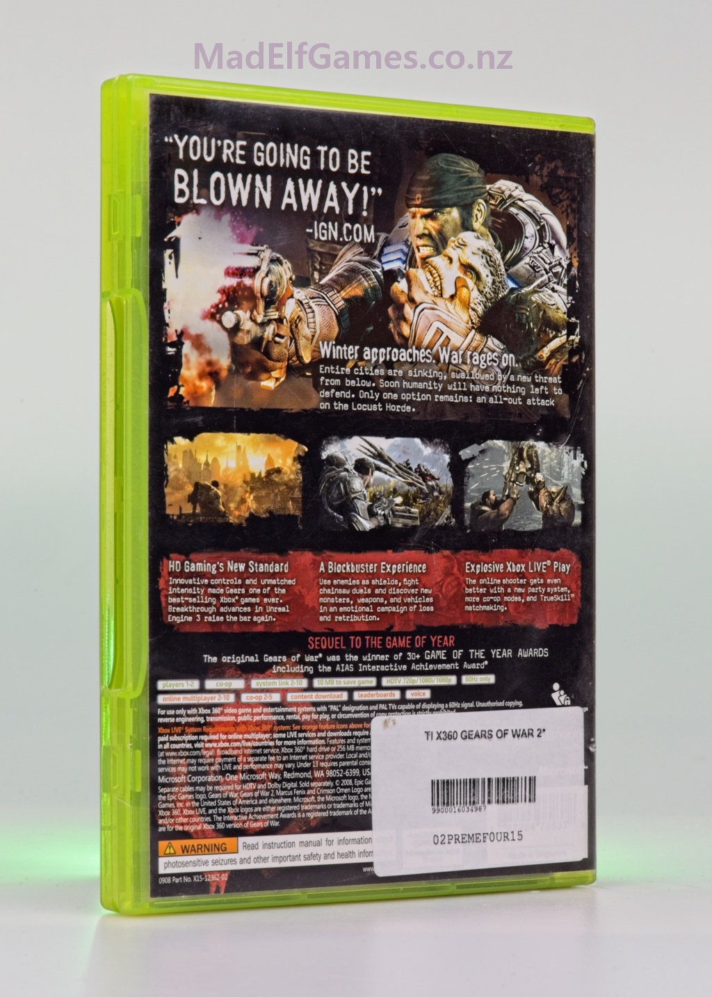 On Xbox 360, Gears of War 2 escalates the war against the Locust Horde with bombastic set pieces and refined cover-based combat. As Marcus Fenix and Delta Squad, you’ll breach sinking cities, carve through subterranean hives, and trade thunderous shotgun duels under collapsing architecture. New tools—Gorgon Burst Pistol, Scorcher, Mulcher, Mortar—expand crowd control, while enemy variants and titanic creatures reshape arenas and force creative flanks. The campaign balances spectacle with a grittier emotional core, backed by chunky Unreal Engine 3 visuals and a driving score. Competitive multiplayer sharpens map flow and teamwork, but the headline is Horde mode: a co-op survival gauntlet of escalating waves that turned last stands into a series signature. With responsive movement, readable recoil, and satisfyingly savage executions, Gears 2 remains a landmark third-person shooter—a definitive chapter in the Xbox 360 era.
